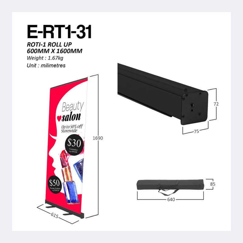 Home / Display Products / Display System With Print / Roll Up Banner / Budget ROTI-1 Series (Black) / ROTI-1 (60cm x 160cm) – Black